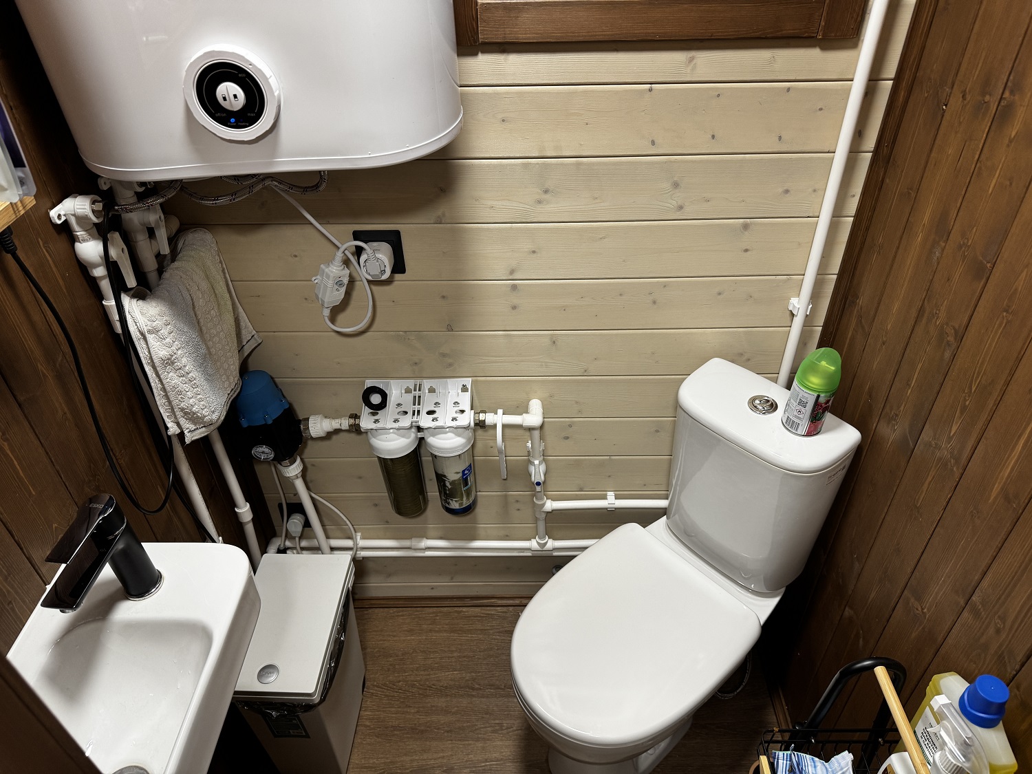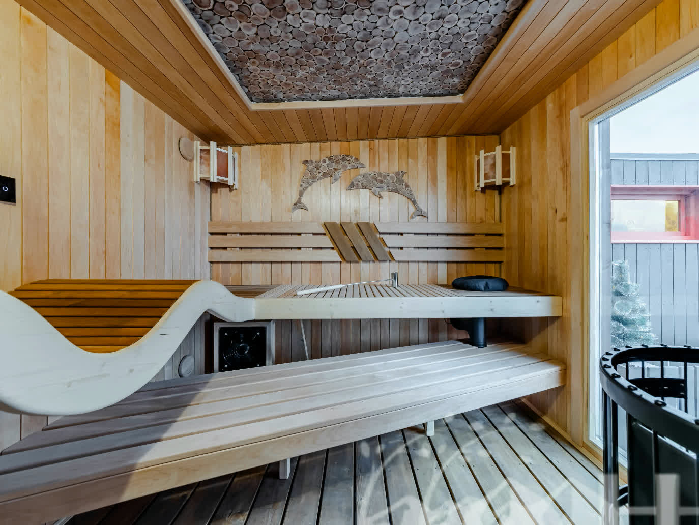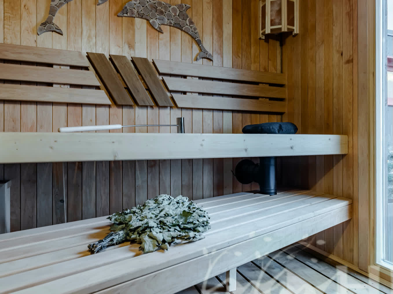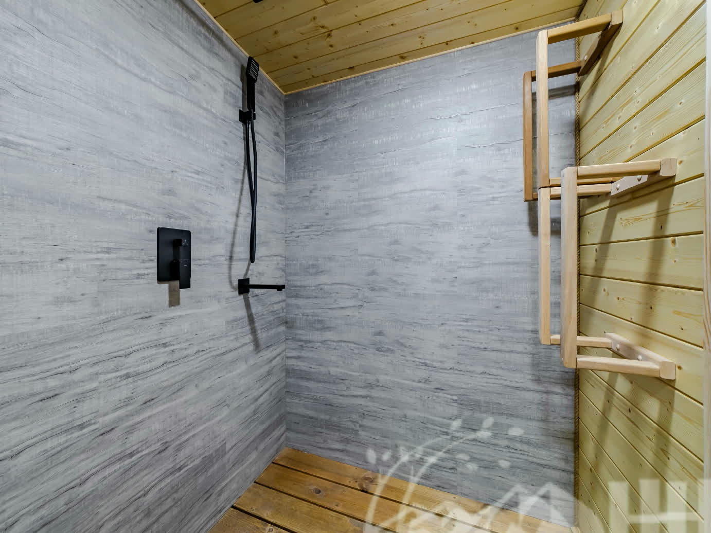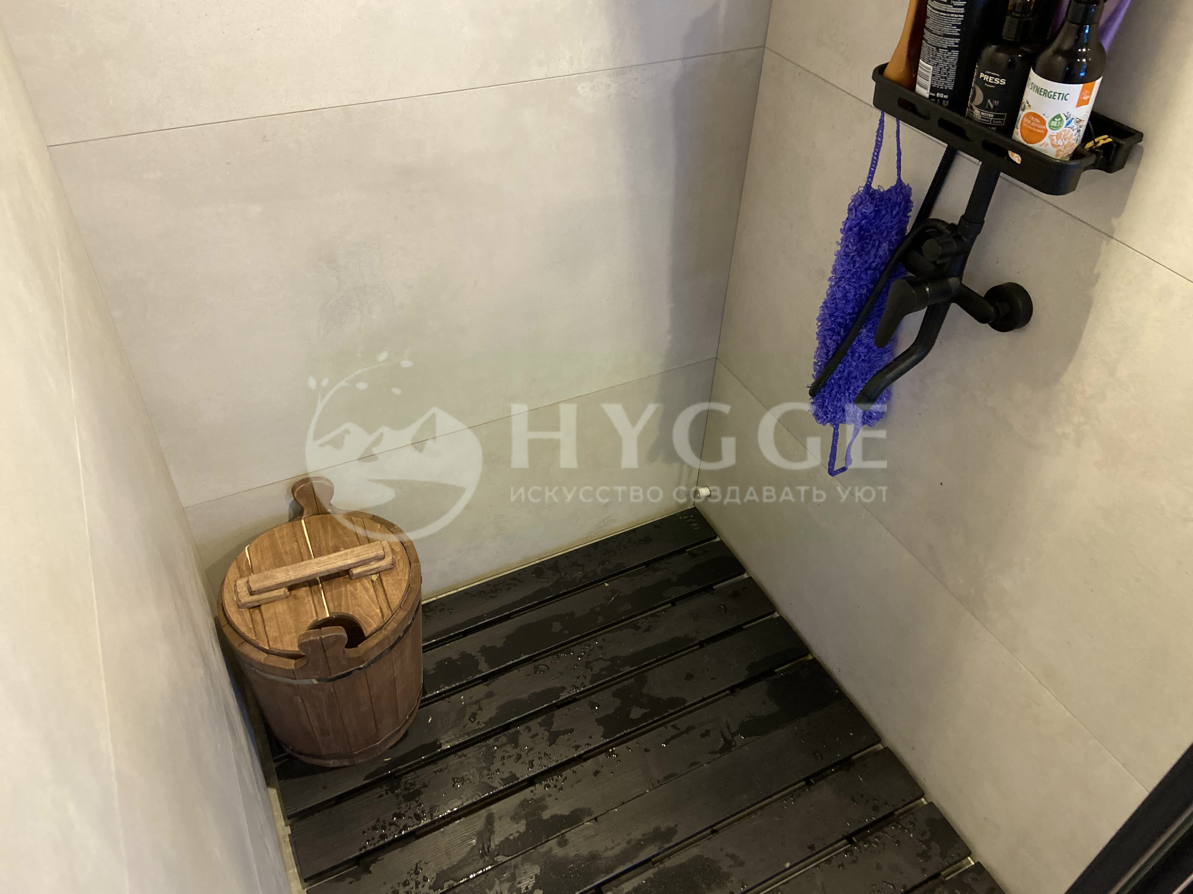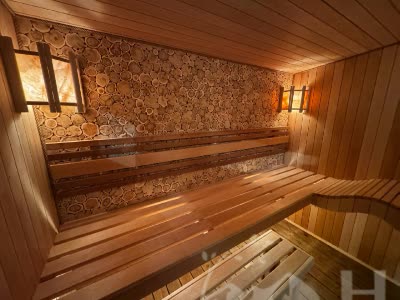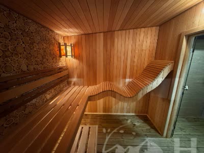 Душевая и парная: гидроизоляция Hyperdesmo, деревянные трарики + сливные трапы с сухим гидрозатвором. Комната отдыха кварцвинилл.