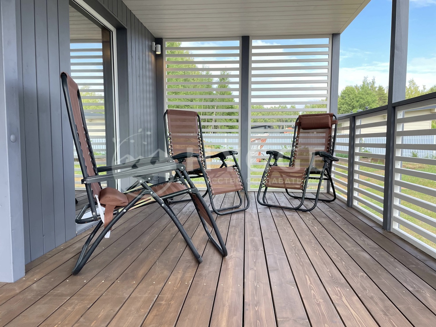 Вертикальный планкен/имитация бруса/ комбинированный фасад с обработкой Tikkurilla. Кровля - наплавляемая.